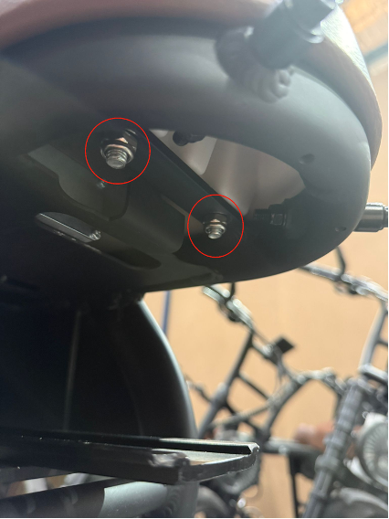 Begin by removing the seat using a 13mm socket and ratchet. Unscrew the two bolts located at the rear of the seat, followed by the single bolt at the front. To gain proper clearance for this step, remove the battery from the frame beforehand.
