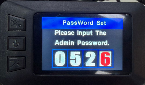 - Press and hold the + and - buttons together until the password screen appears.